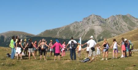 La fraternidad no es sólo un sueño de místicos, para eso están las lonas, los toldos, las anchas tiendas... Para intentarla montamos No sabemos si alcanzamos esa fraternidad de altura. Quizás algo de ella acariciamos pues cantamos mucho, reímos otro tanto. Y en los círculos se abrieron los corazones y en las veladas un crear adormecido. Nos sinceramos y comprendimos un poco más, mujeres y hombres, adultos y jóvenes... La fuerza de la montaña, la fuerza del grupo, la sobredosis de grano y legumbre…, no sabemos lo qué fue, el caso es que nadie quería marchar, el caso es que quienes se iban, aparecían de nuevo un amanecer apretando sus manos en el círculo… No sabemos lo que fue, el caso es que se tejieron lazos y queremos seguir caminando juntos/as hasta ese Campamento que nunca se acaba, hasta esos toldos que nunca se arrían, hasta esa Hermandad que nunca caduca… No sabemos lo que fue, el caso es que dolía dentro cada compañero/a que anunciaba en el círculo de la noche su partida. Lo de Allí Arriba, quizás sea algo de eso, de esos círculos que nunca se cierran, de un compartir que nunca cede. Lo de Allí Arriba, quizás sea algo de eso con un sol menos implacable, con unas fuentes que nunca se secan, con unas cumbres que no derrotan… Quizás Allí Arriba también toquen caracola a las 6’30 de la mañana y tiriten en la oración matutina… Quizás también Arriba duermen en círculo bajo las estrellas mientras que alguien cuenta un cuento hasta desaparecer las estrellas y acercarse el alba. Quizás quieran fichar a Kepa- Puri para que les lleven sin despiste alguno a sus soberbias alturas…, a la Trini para que les enseñe incansables concheras, a la Selene, a la Victoria, a la Carmen… para que nunca calle la danza. Quizás tengan que subir Guan y María para sembrarles laberintos de piedras y piñas de colores, quizás Iris, María de Palma y su banda de pequeños clowns, si escasean narices rojas… En la hora de la siesta, Sebas rasga una guitarra rodeado de pequeños, invoca a Alguien que “ha venido a la Orilla” y que quiere Le sigamos… ¿Será Él mismo que nos arrejuntaba en los interminables abrazos colectivos de la mañana, Él/La que mantuvo encendida esa llama de fraterno amor entre las más de ciento treinta personas que acudieron a Pirinea…? Volveremos, si Dios quiere, a Belagua el próximo verano. Ir preparando los labios para los nuevos cantos, las piernas para las nuevas alturas, los cuentos para las nuevas veladas bajo las estrellas… La cita también en Asolaze en Agosto del próximo año, el Cielo siempre por delante. |