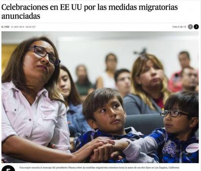 La noticia que abre hoy los periódicos nos anima a creer que quizás no estábamos del todo equivocados. Hoy hay cinco millones de emigrantes sin nudo en el estómago, ni amarga lágrima en sus mejillas, cinco millones de "sin papeles" que no están reuniendo sus enseres y haciendo las maletas, que no se están despidiendo de sus familiares y amigos; cinco millones de hermanos, la inmensa mayoría latinos, que seguramente no tendrán que volver a su geografía de precariedad y que podrán intentar un futuro más próspero y con mayores posibilidades, gracias al empeño de Obama y lo suyos. Aún con las cámaras sin mayoría, el presidente ha dado un mazazo en la mesa y ha dicho que ellos se quedan. Hoy hay cinco millones de personas, cinco millones de razones para afirmar que la era Obama no fue baldía. Asumimos de buen grado las críticas que hemos recibido y seguiremos recibiendo por este apoyo. El mandatario por encima de todo ha de estar impregnado, no tanto de cálculo político y estrategia, sino de humanidad y de generosidad. Nosotros decimos: "Gracias presidente, gracias por la acogida, por no meter en miles de aviones a millones de personas de vuelta al sur. Gracias por su valentía y la de buena parte de su pueblo." La historia sabrá colocar a cada quien en su lugar debido. * En la imagen una mujer escucha el mensaje del presidente Obama sobre las medidas migratorias mientras toma la mano de sus dos hijos en Los Ángeles, California. Fuente "El País" |