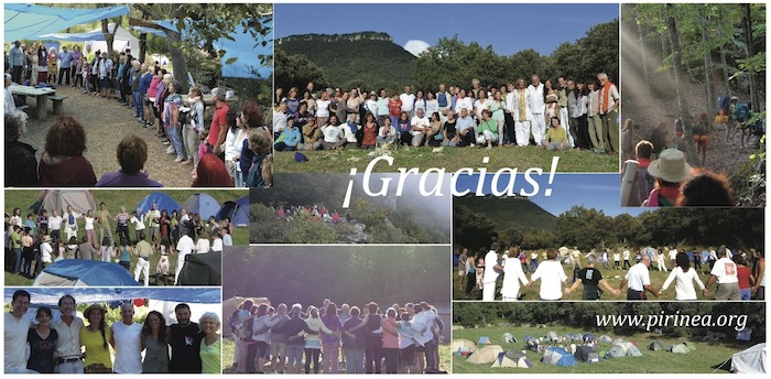 ¿Cómo devolver todo lo entregado en medio del círculo, junto a los pucheros, en las actividades, en el quehacer diario? No sé si estuvimos a la altura de todo lo recibido. No sabemos cómo podremos devolver ese alarde simpatía, de cordialidad, esa actitud de colaboración constante por parte de los facilitadores y participantes. Nos sentimos en deuda con cada uno de sus gestos, de sus brillos y perennes sonrisas. El Cielo se apiade de nuestro inmenso débito. Caminamos ahora los mismos altos prados y bosques, pero a nuestros pasos no les lastra la nostalgia. Ya oímos el eco de los cantos venideros, el susurro de los círculos cada vez más anchos del mañana que ya está llegando... "Campamento de conciencia y crecimiento" Camping de Artaza ( Navarra). 1-22 de Agosto www.pirinea.org |