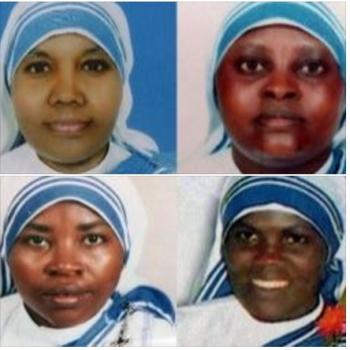 Hermana Anselm (Cecilia Minj, 61, India), Marguerite (Anathalie Mukhasema, 44, Ruanda), Judith (Kimatu Anastacia Kanini, 41, Kenia) y Reginette (Valentine Uwingabire, 32, Ruanda).De la Orden de las Hermanas de la Caridad de la Madre Teresa de Calcuta "En el momento de ser asesinadas, llevaban puestos aún los delantales que han usado para servir el desayuno y sus medicinas a los viejos más pobres de Adén (Yemen). La hermana Sally, la única superviviente entre las hermanas no muestra rencor a los verdugos y recuerda que los demás musulmanes de la ciudad las respetaban. Quiere volver a Adén. Mientras llega ese día, recuerda a sus hermanas. <>". Era domingo de Resurrección." Fuente : El Mundo http://www.elmundo.es/…/2016/03/30/56f67378268e3e7c658b458f… |