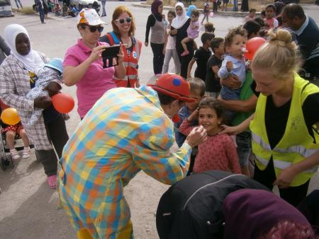 Después de la actuación era un motivo para encontrarnos con cada uno de los niños. Era una forma de bendecirles, de conjurar el espíritu de la desdicha, de invocar que nunca jamás las bombas pendieran sobre sus cielos, las guerras amenazaran su futuro."¡You are a great clown…!", les coloreábamos de rojo la punta de la nariz y marchaban felices, tocados con el halo de una silenciosa alegría. Era la ocasión de sintonizar con su Real Inocencia, con su Sagrada Presencia sin origen, ni estigma; sin bandera, ni geografía. Era el momento de depositar a la orilla de su amenazado futuro, los más elevados sueños. Era el instante sagrado para contribuir a liberarles del ayer y abrirles la puerta de un mañana diferente. "Red nose" sólo era la excusa. Era la forma de encontrarnos de alma a alma, tras el jaleo, los tropezones, las caídas… Era decirles que se merecen un futuro digno, libre de amenazas y huidas. Era el instante para compartirles que habría un hogar de paz para ellos en algún lugar del mundo, para contagiarles la esperanza de que alguna frontera se abriría y ellos pasarían y tendrían su cuarto, su mesa, su pizarra..., su mañana cargado también de oportunidades. Han sido sin duda los instantes más felices, me atrevería a decir sagrados de todo el viaje. En realidad hubiéramos estado todo el tiempo saludando a esos niños tan agradecidos, pintando sus narices rojas, coloreando y alumbrando su futuro. |