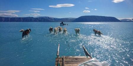 Puedan mañana ladrar con poderoso eco, ante un sólido paisaje que retumbe por fin esperanza. Hielo debajo de sus patas, futuro delante de nuestra mirada. Debían caminar sobre una inmensidad más blanca, nosotros debíamos avanzar también sobre un terreno más firme, hacia un horizonte menos acuoso. Nos faltó cuidado entre nosotros, cuidado y ternura para con la Tierra nuestra Madre. Deseamos chapotear sólo en las playas de fina arena. Aspiramos a un panorama menos líquido. Aún estamos a tiempo... Puedan esos perros un día volver a correr por el puro, blanco y duro hielo; puedan conocer las nuevas generaciones algo del glorioso paraíso que fue en su día este planeta querido. ¡¡Así sea!! |