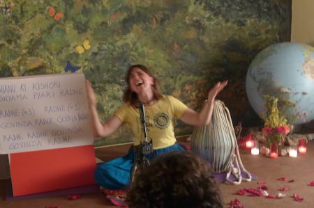 ¿Cómo concebir más entrega en un devoto? Cerca de las dos de la mañana la acompañé a su coche. Ni preguntó por el camino de vuelta quien tiene fijadas mente y confianza en las Estrellas. Alarde y generosidad también en los detalles. No aceptó siquiera la gasolina, como si deseara mantener su canto en otro superior pentagrama, sostenerlo en su punto más elevado de pureza y entrega; como si no quisiera mezclar las cosas del mundo con el Cielo al que nos acababa de guiar. Ahora ya sabemos que el “Bhakti yoga” se basta para alcanzar Sus Pies. El canto devocional nos puede llevar más lejos, más alto que todas las brújulas, ya de metal, ya de otra pasta, juntas. Ahora sabemos que podremos quemar sin dolor, ni pena toda nuestra ingente biblioteca sagrada. Mila esker bihotz-bihotzez Asha! Zurekin, betirako daramazu guk inoiz ahaztuko ez degun gaua! Inmensamente agradecidos también a Primi y a Juan Carlos que mantuvieron su máquinas encendidas hasta altas horas y hoy regalan a la posteridad tamaño testimonio. |