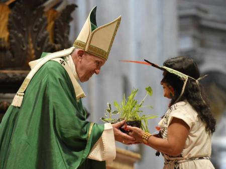 “Querida Amazonía”, pese a su amable encabezamiento, no deja de ser una exhortación apostólica lastrada de cierta frustración. El “mayor protagonismo de la mujer” ya no puede ser menos que el de una igualdad de derechos felizmente consagrados, por lo menos de palabra, en el resto de los ámbitos sociales. ¿Pueden seguir separados el amor a la Amazonía y el amor a la mujer? Ese amor pasa por la devolución de la presidencia que le corresponde, ya en los altares de la selva tropical, ya en los del asfalto. El Espíritu manifestado, de forma clara y seguramente preferencial, en el rostro tierna y amorosamente encendido de una mujer, es capaz de renovar lo aparentemente caduco. Pero, a veces, sólo a veces, más que a reivindicar, somos invitados a revivir. En ocasiones la fuerza incontestable de un recuerdo vívido, sincero y puro puede echar el lazo al escurridizo futuro. ¿Quién dudaría que esa mujer que ayudaba en la misa mayor reencarnaba a su manera al Sumo Oficiante de aquella última y más sagrada Cena? Fue el pasado domingo en la misa de las doce, en el templo más importante de la ciudad. Detrás de la más bendita Forma brillaba la sonrisa más amable. La contenida sonrisa no desbordaba los márgenes de la obligada ortodoxia en tan significativo templo. Los apuraba. Esa sonrisa fraterna, solar podría ser el adjetivo que más se le acercara, se encendía radiante en el preciso instante que anunciaba al cuerpo de Cristo. La palabra emanaba de un alma consciente del instante único. ¿Habría una mujer más feliz en el mundo que esta asistente compartiendo el pan de la sagrada comunión, la fe en el Jesús de la Iglesia ancha, del amor que no conoce límites? Esa entrañable sonrisa, ese singular gozo al repartir el “cuerpo” del Nazareno, esa invitación a revivir una profunda comunión, a participar en una hermandad universal, no merece ninguna puerta cerrada. Es el “password” indiscutible a los más elevados y privativos altares. La ayudante jamás pedirá nada, jamás reclamará lo que le corresponde por sobrados y evidentes motivos. Ella no relevará al ya anciano y sacrificado sacerdote que debía gozar de una bien ganada jubilación. Por eso escribimos nosotros. Ella nos perdone. A ella le basta aguardar a que el domingo suenen de nuevo las imponentes campanadas en la torre del Buen Pastor. Entonces se preparará para asir la más sagrada copa, debajo de la más elevada cúpula y ejercer, siquiera por unos muy contados segundos, el más sublime oficio, compartir "Su Cuerpo". Con nuestros más finos hilos y esmerados bordados les hemos de preparar atavío de ceremonia. Esa Sonrisa lo merece. Seguramente nuestros ojos de carne no verán a la mujer presidir el altar. Surgirán otros altares y la Iglesia inevitablemente irá perdiendo esas Sonrisas. Querida Amazonía de América y del mundo entero, porque todos respiramos el aire que tu generoso follaje nos regala. En tu floresta sin par, en tu infinito templo sin adoquines, ellas retornen a su sagrado centro. Ellas dieron con las bellas flores y las sublimes esencias; ellas conocen los secretos de la Vida, sostienen la belleza y el mañana. A uno y otro lado del océano no menos infinito, ellas presidan también nuestros altares de verde junco, de madura madera, de inmortal piedra. En el momento supremo, ellas eleven a los cielos esa Forma que jamás caduca. |