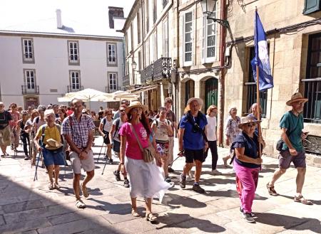 Nos preocupa que hoy la masificación y comercialización vayan en detrimento de la esencia centenaria. En nuestros días cuesta hallar la motivación profunda, al margen de la aventura fácil, del plan económico, de la popular mezcla de encuentro, deporte y cerveza. Nada más lejos del juicio, sólo pedimos un carril más callado. No criticamos la superficialidad en el caminar, echamos en falta la confluencia con otras soledades, el encuentro que nos conmueva, la reunión con otros silencios andantes. No cuestionamos el río de peregrinos, sólo sugerimos una oportunidad para quien quiera avanzar en un silencio inherente a la ancestral Senda. Al fin y al cabo, muchos trenes ya cuentan con sus vagones para quienes quieren viajar en silencio. Cuando el último día de este pasado Agosto llegamos a Santiago por el camino sanabrés no reunimos paciencia suficiente para ponernos al final de una de las interminables colas que se hacen para entrar a la catedral. Nos dirigimos a una solitaria iglesia adyacente por nombre San Paio de Antealtares. El templo barroco y abigarrado de viejas esculturas estaba vacío de almas. En medio de él había sólo un devoto peregrino canadiense con su libro de rezos en la mano. El peregrino que busca recogimiento deberá prescindir de ver volar el botafumeiro sobre su cabeza, renunciar al “Spotify” en sus oídos al penetrar la Ciudad Santa, procurará no ser englutido por la atmósfera y conversación banal. El Camino es un patrimonio común que no debiera salir de la custodia del altruismo. Convendría que el Camino, en cuanto ruta espiritual, estuviera, siquiera en alguna medida, libre del mercadeo. Hemos dormido en albergues que eran “ latas de sardinas”, saunas en las que tenías que elegir entre el ruido de la calle o la asfixia en el interior. El negocio no debiera acompañar lo sagrado, el uso comercial de la Senda debiera limitarse. El hacinamiento que procuran ciertos hospitaleros/comerciantes puede ser cuestionado. El metro cuadrado a su vera no debiera ser motivo de especulación. Al Camino no le conviene reducirse a una mera opción de caminar en “modo barato”. La democratización del mismo no difumine su sentido, la cantidad no debiera engullir la calidad. Calidad al fin y al cabo sólo representa intencionalidad. Basta una intención elevada, no necesariamente la adhesión a un credo, para calzar las botas y ponerte buscar las flechas amarillas. He visto muchos peregrinos terminar su andadura a las once de la mañana al lograr asegurar a esa temprana hora su cama. Sin embargo, el peregrino está en el Camino, no entre las cuatro paredes del albergue o el restaurante. Vive, ora, medita, come, escribe, lee, siestea... en el Camino. No le interesa llegar antes, sino en irremplazable Compañía. No tiene un avión que le aguarda. Su Canción es la dentro, no la de los auriculares. No sabe de kilometrajes, no lleva pulseras digitales. Sólo le interesa el GPS que le conduce más profundo en sus adentros. No corre jamás a pillar cama. El colchón no ocupa su mente. Si lo halla bendice a Dios y lo agradece, si no disfruta al raso de la contemplación de las estrellas infinitas. El Camino es el espacio, la vía plural e integradora en la que podemos encontrarnos y convivir todos, por supuesto también Macarena Olona, pero los focos que deslumbran y despistan debieran apuntar en otra dirección. La elevada estadística tiene sus evidentes "pros", pero también sus inevitables "contras". La post-pandemia y las ganas de campo abierto han disparado las cifras, los albergues rebosan y tiran colchonetas por los suelos, pero la paz y el recogimiento quedan cada vez más arrinconados. Nadie podrá dudar de que el Camino ha cobrado nueva y a veces abrumadora vida, ahora prima preguntarnos qué vida queremos para el Camino. Cuando la Xunta llame a la Senda Compostelana no se olvide de apagar las luces de neón, de esconder alguna flecha, de señalar la bifurcación entre gastronomía y espiritualidad. La compostelana sólo será un cartón más en el escritorio, mientras no pongamos conciencia, atención y agradecimiento a cada paso. * En la imagen entrada de "Peregrinea. Comunión que camina", el pasado 30 de Agosto en Santiago. La bandera de la Tierra al frente portada por nuestra querida Tona. Artaza 3 de Septiembre de 2022 |