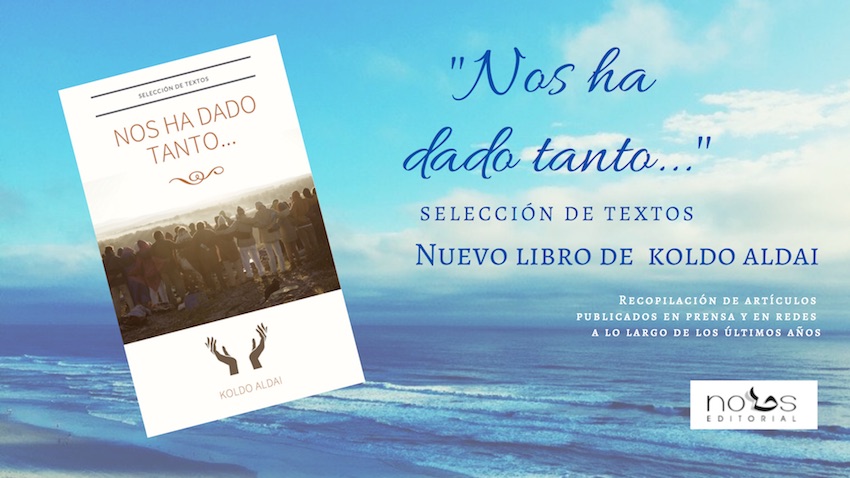 Os presento un nuevo libro recopilatorio de letras que han perseguido el pálpito de la actualidad. Reúno en él artículos de los últimos años. “Guiño al alba” y “Sosteniendo la esperanza” precedieron a este nuevo volumen de compendio. Pedidos entrando en la web: http://www.editorialnous.com/KoldoAldai.htm Precio: 12 €. El envío es gratuito a cualquier punto de España. Muchas gracias "La actualidad es una oportunidad de siembra que no podemos despreciar. Acechamos la actualidad. Ella nos brinda las ocasiones de pregonar precisamente aquello que no tiene tiempo, ni geografía. De alguna chistera habíamos de extraer excusas para aventar las enseñanzas que se nos otorgan. El telediario de las tres es, al fin y al cabo, un conjunto de posibilidades para susurrar principios superiores. La actualidad no deja de ser gimnasio en el que se mide la humanidad y el mundo un espacio donde desplegar una promesa. Al fin y al cabo nada cuenta, ni los títulos, ni los honores, ni los cargos que ocupamos en la tierra...;?sólo cuenta nuestra fidelidad a aquella promesa, compromiso, como no podía ser de otra forma, de donarnos al mundo. "Un mundo, una promesa", es un poco recordatorio de esa responsabilidad de cada quien con respecto a la comunidad. Al fin y al cabo, mañana, al dejar la vestidura de la carne, sólo responderemos por esa promesa íntima que nos hicimos a nosotros mismos." Descarga gratuita en PDF aquí: http://www.KoldoAldai.org/descargas/Unmundounapromesa.pdf |